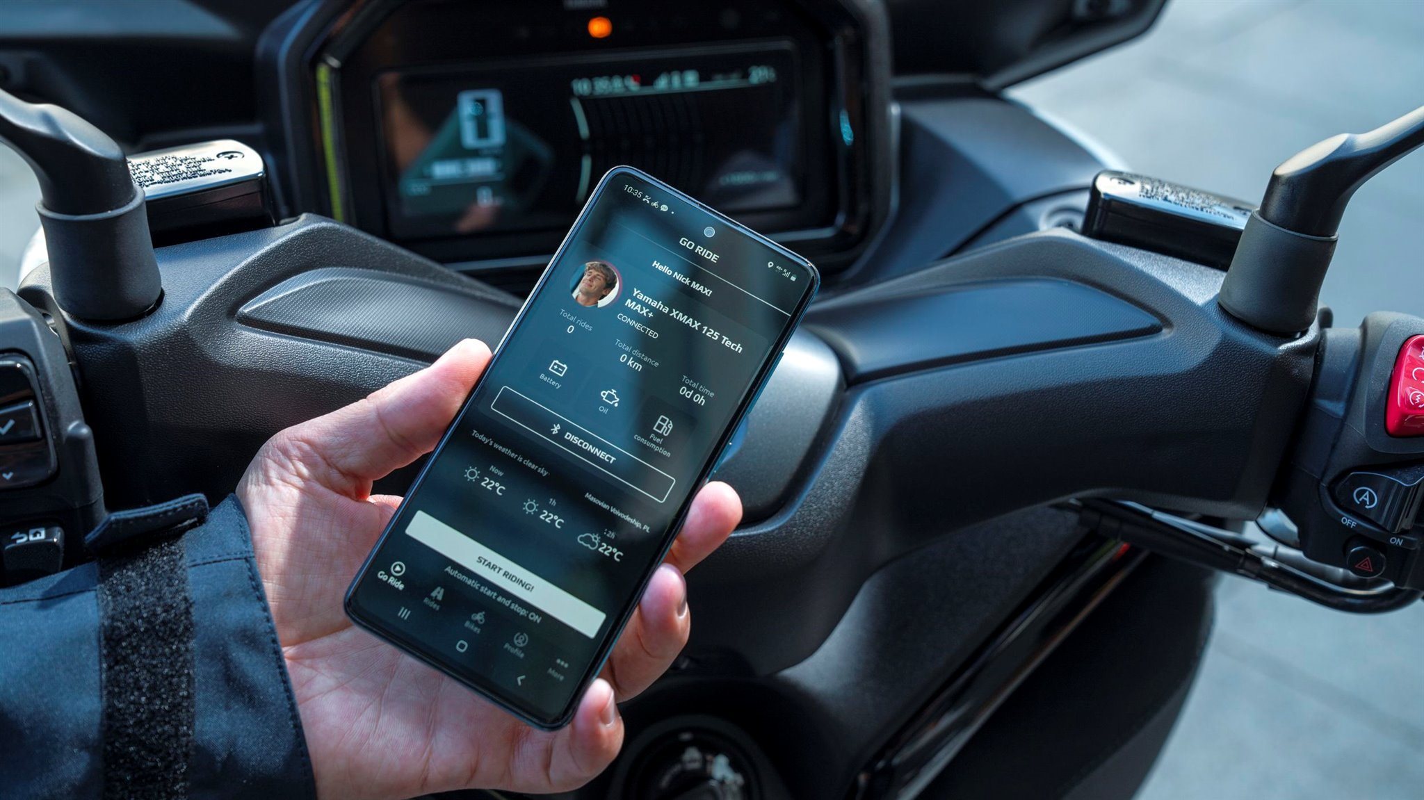 Zu seiner High-End-Ausstattung gehört eine elektrisch einstellbare Verkleidungsscheibe für einen ultimativen Windschutz. Das neu gestaltete Cockpit bietet volle Konnektivität, sodass Du über dein Smartphone auf die kostenlose Garmin-Navigation* zugreifen und Anrufe, Nachrichten, Musik und vieles mehr abrufen kannst. Spezielle Tech MAX-Farben mit exklusiven Verkleidungsmerkmalen unterstreichen das High-End-Image zusätzlich. (* Die Navigations-App ist in manchen Ländern nicht erhältlich. Informationen zu Tempolimits, Verkehrslage usw. werden in einigen Ländern und Regionen nicht bereitgestellt. Außerdem werden Daten zu Geschwindigkeitsbegrenzungen möglicherweise nicht zeitnah aktualisiert, und Geschwindigkeitsbegrenzungen können sich je nach Tageszeit ändern, z. B. in der Nähe von Schulen oder Baustellen.)