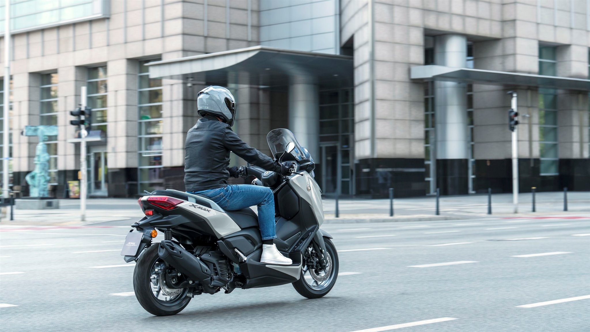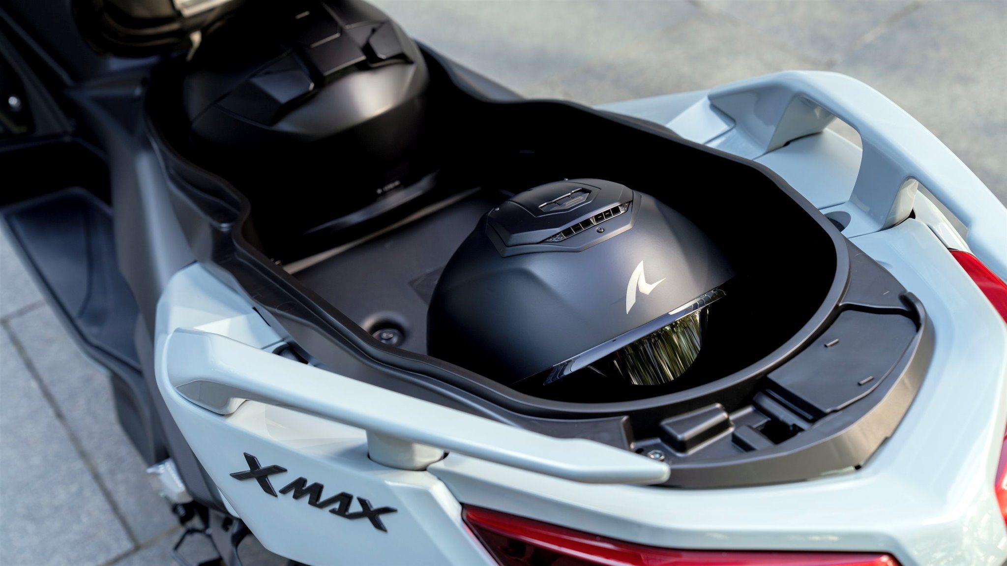 Die dynamische Sportverkleidung mit Voll-LED-Beleuchtung sorgt dafür, dass der XMAX 125 Tech MAX+ aus der Masse heraussticht. Sein gutes Aussehen wird durch funktionale Merkmale wie dem Stauraum für zwei Helme* unter der Sitzbank, einem kraftstoffsparenden Start-Stopp-System, einer schlüssellosen Bedienung per Smart Key und einer USB Typ C-Buchse ergänzt. (*Abhängig von ihrer Größe und Form.)