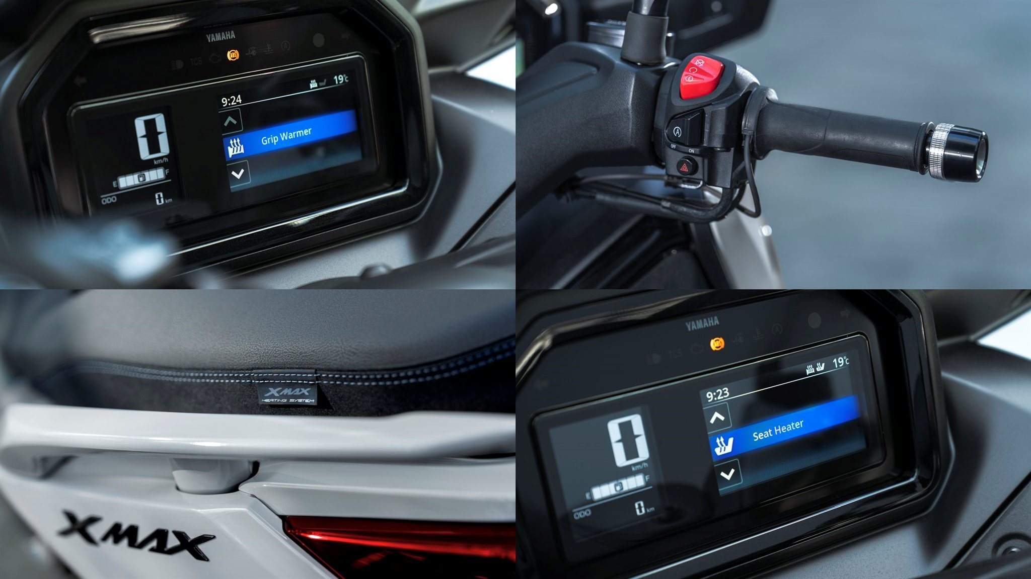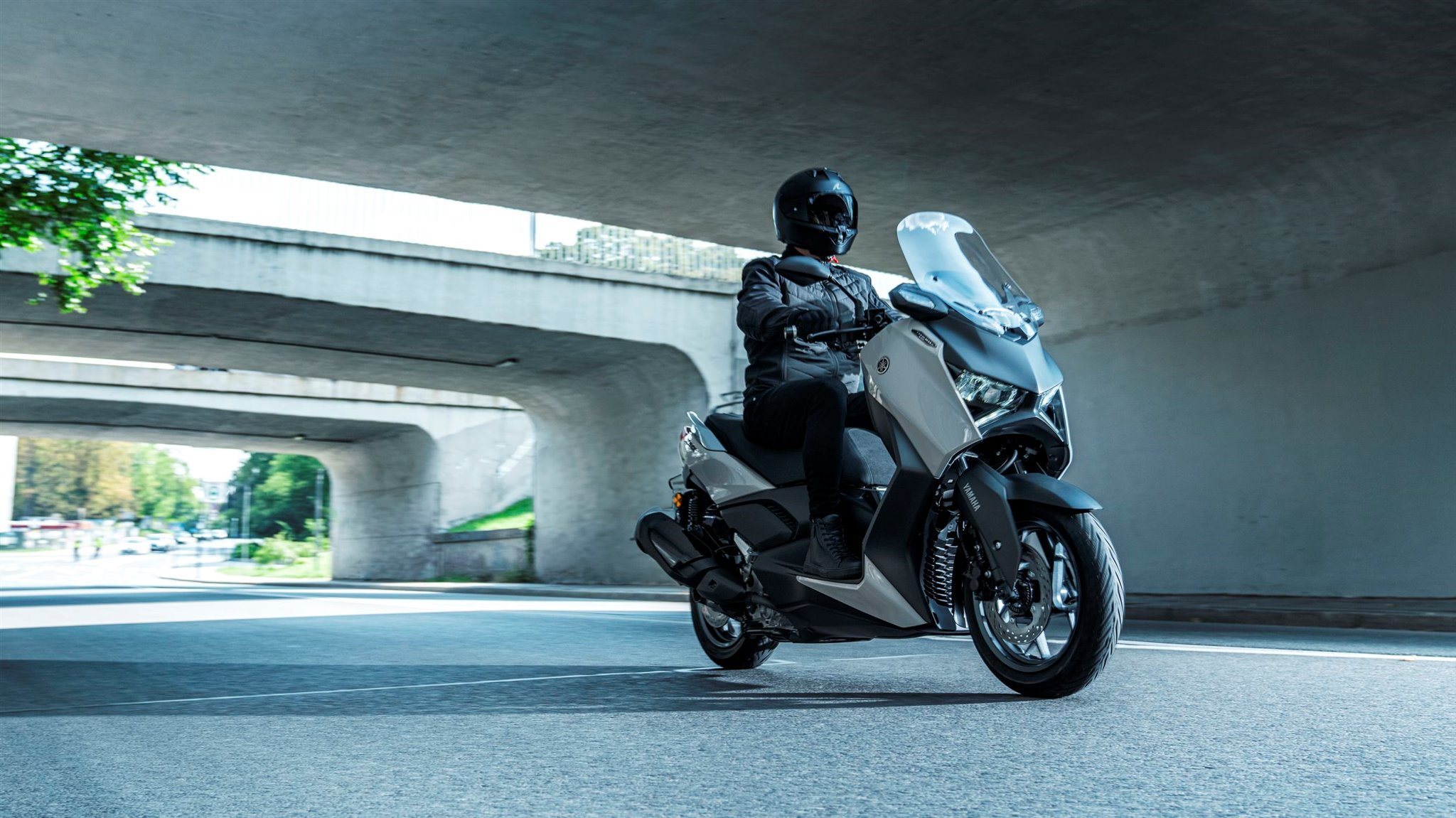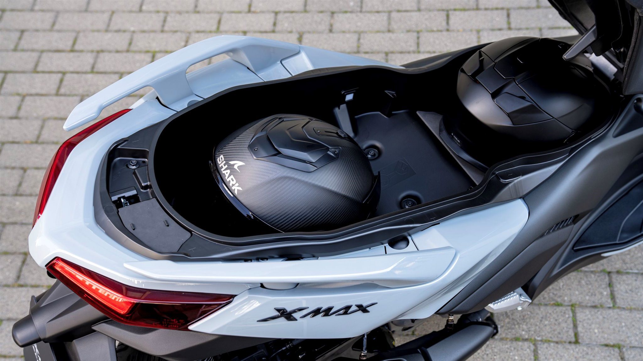 Für einen maßgeschneiderten Windschutz ist der XMAX 300 Tech MAX+ mit einer elektrisch einstellbaren Verkleidungsscheibe ausgestattet, die sich stufenlos um 95 mm variieren lässt, und das speziell designte Gehäuse der vorderen Blinker und der Frontspoiler verbessern die Aerodynamik. Zusammen mit dem einstellbaren Lenker und den geräumigen Trittbrettern ist es für den XMAX 300 Tech MAX+ Fahrer einfach, seine ideale Sitzposition zu finden.