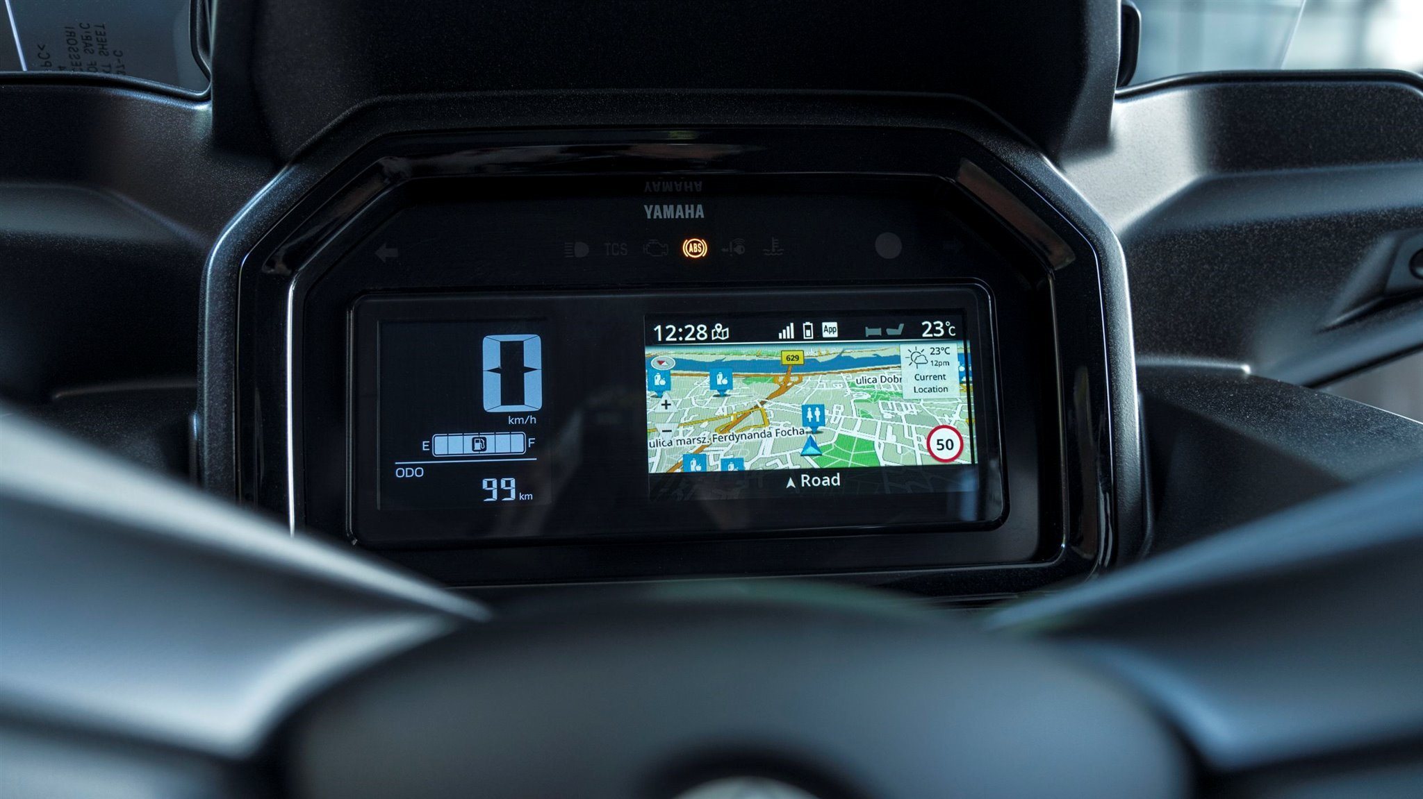 Das Breitbild-Cockpit hat ein gut ablesbares 4,2 Zoll TFT-Farbdisplay und eine 2,8 Zoll LCD-Anzeige. Die umfangreiche Konnektivität ermöglicht dir den Zugriff auf die kostenlose Garmin-Navigation* über dein Smartphone sowie auf Anrufe, Nachrichten, Musik und mehr. Und mit Traktionskontrolle, ABS und einem Notbremssignal (ESS) ist der XMAX 300 Tech MAX+ für jede Fahrt bestens gerüstet!